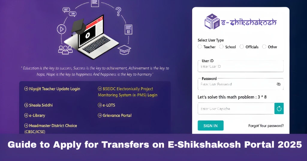 Guide to Apply for Transfers on E-Shikshakosh Portal 2025