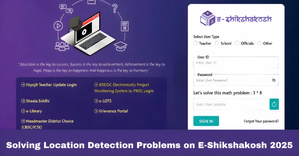 Grant Location Permissions: Make sure the browser or the E-Shikshakosh app has permission to access your location. Without this, the portal won’t be able to detect your location.
